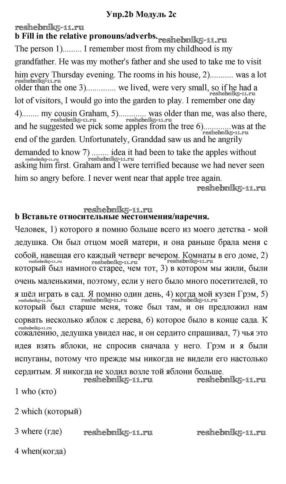Готовая домашняя работа с ответами по Английскому языку за 11 класс Эванс, Дули, Оби, Афанасьева, Михеева Учебник Spotlight Просвещение 2015 ФГОС - Часть 2c 2b