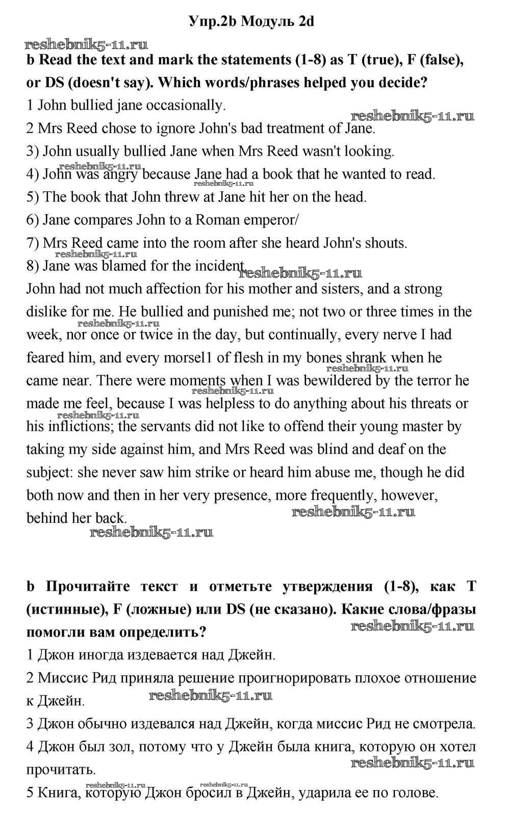 Готовая домашняя работа с ответами по Английскому языку за 11 класс Эванс, Дули, Оби, Афанасьева, Михеева Учебник Spotlight Просвещение 2015 ФГОС - Часть 2d 2b