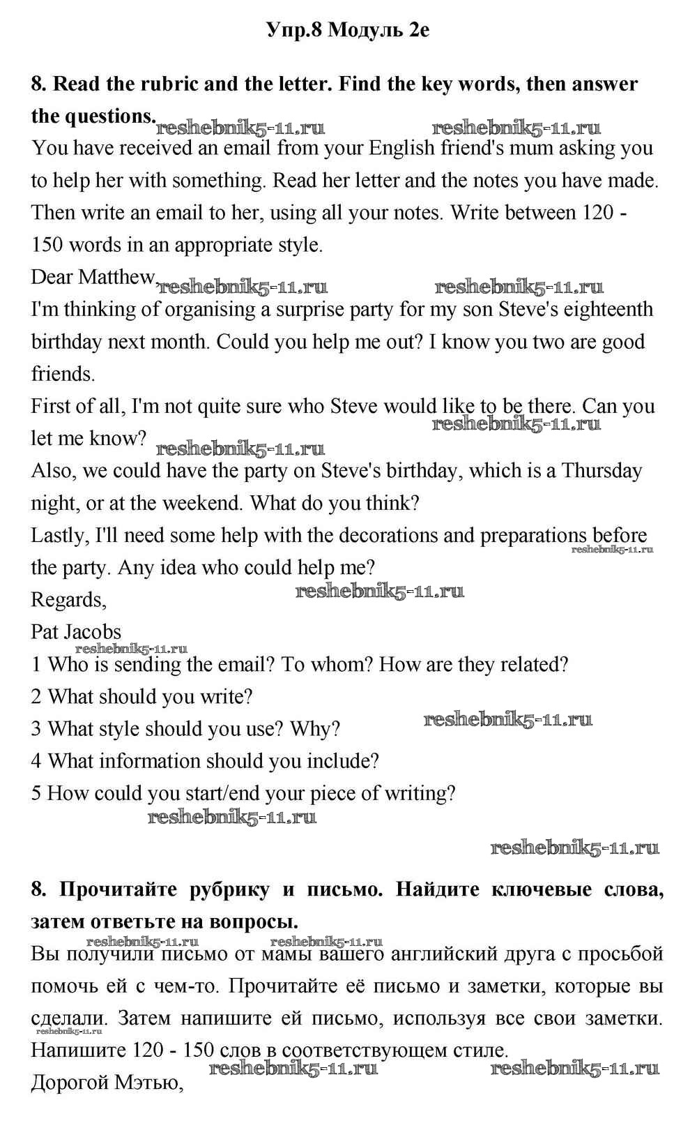 Готовая домашняя работа с ответами по Английскому языку за 11 класс Эванс, Дули, Оби, Афанасьева, Михеева Учебник Spotlight Просвещение 2015 ФГОС - Часть 2e 8