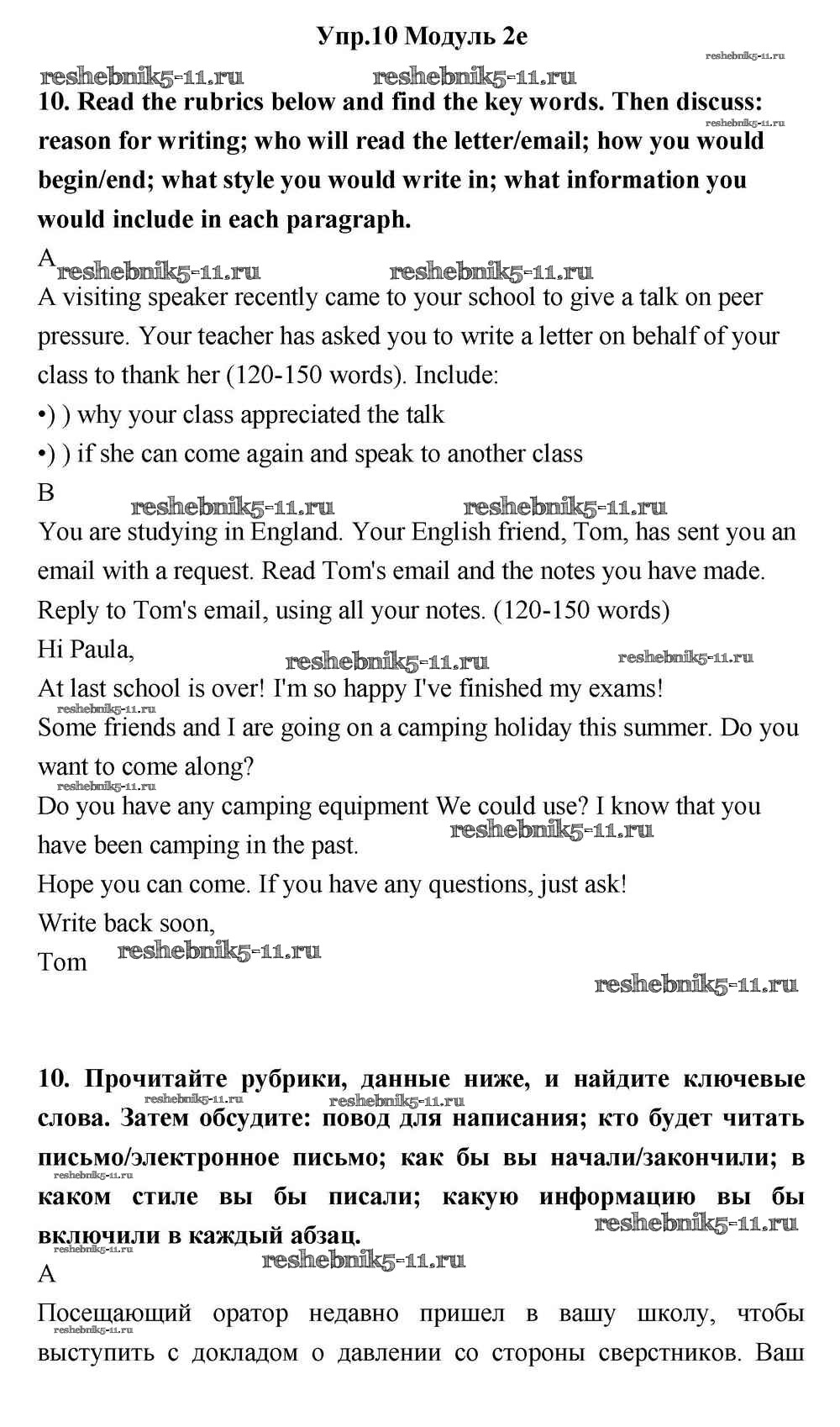 Готовая домашняя работа с ответами по Английскому языку за 11 класс Эванс, Дули, Оби, Афанасьева, Михеева Учебник Spotlight Просвещение 2015 ФГОС - Часть 2e 10