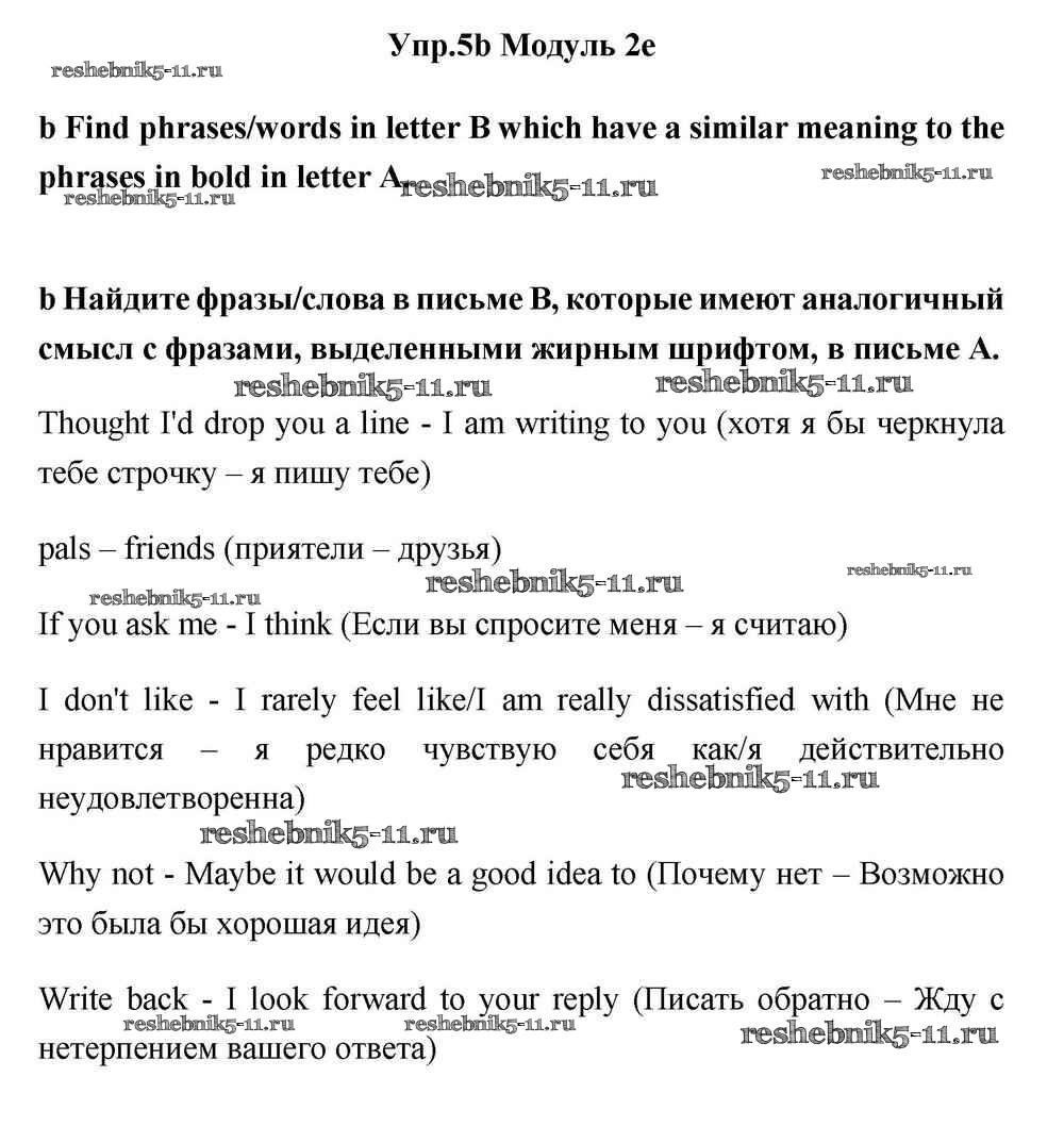 Готовая домашняя работа с ответами по Английскому языку за 11 класс Эванс, Дули, Оби, Афанасьева, Михеева Учебник Spotlight Просвещение 2015 ФГОС - Часть 2e 5b