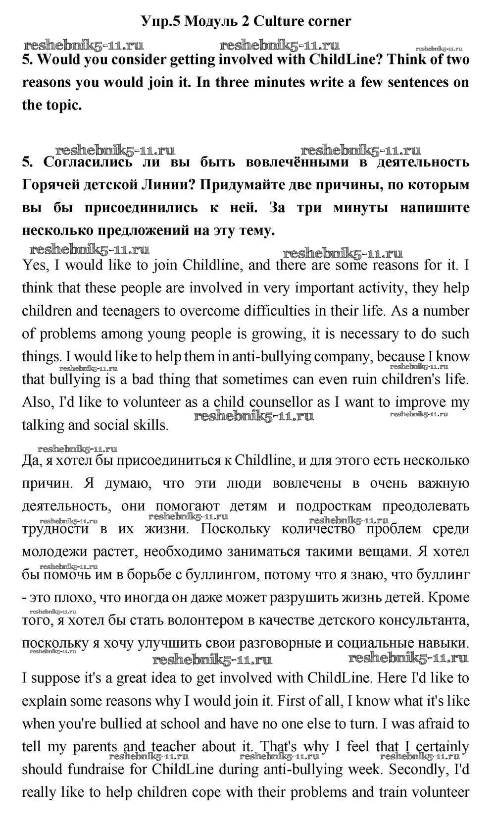 Готовая домашняя работа с ответами по Английскому языку за 11 класс Эванс, Дули, Оби, Афанасьева, Михеева Учебник Spotlight Просвещение 2015 ФГОС - Culture corner 5