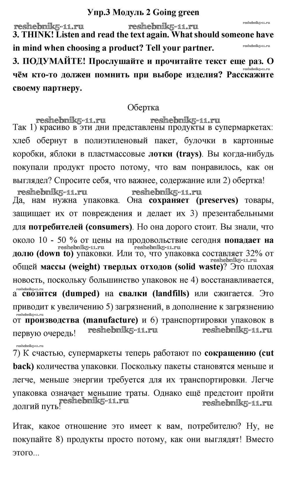 Готовая домашняя работа с ответами по Английскому языку за 11 класс Эванс, Дули, Оби, Афанасьева, Михеева Учебник Spotlight Просвещение 2015 ФГОС - Going green 3