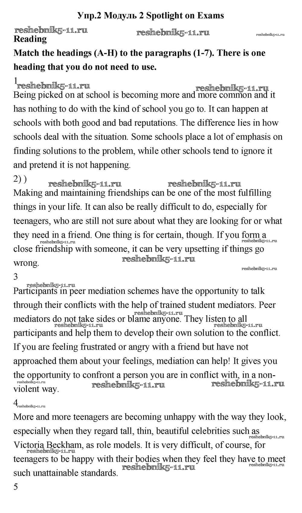 Готовая домашняя работа с ответами по Английскому языку за 11 класс Эванс, Дули, Оби, Афанасьева, Михеева Учебник Spotlight Просвещение 2015 ФГОС - Spotlight on Exams 2