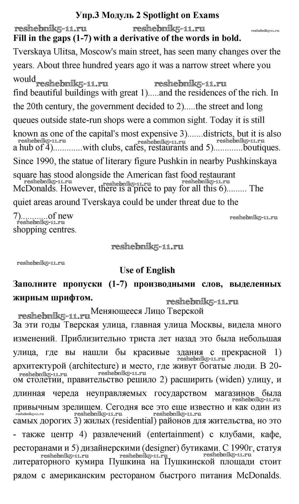 Готовая домашняя работа с ответами по Английскому языку за 11 класс Эванс, Дули, Оби, Афанасьева, Михеева Учебник Spotlight Просвещение 2015 ФГОС - Spotlight on Exams 3