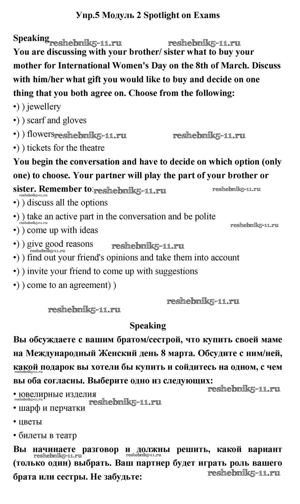 Готовая домашняя работа с ответами по Английскому языку за 11 класс Эванс, Дули, Оби, Афанасьева, Михеева Учебник Spotlight Просвещение 2015 ФГОС - Spotlight on Exams 5