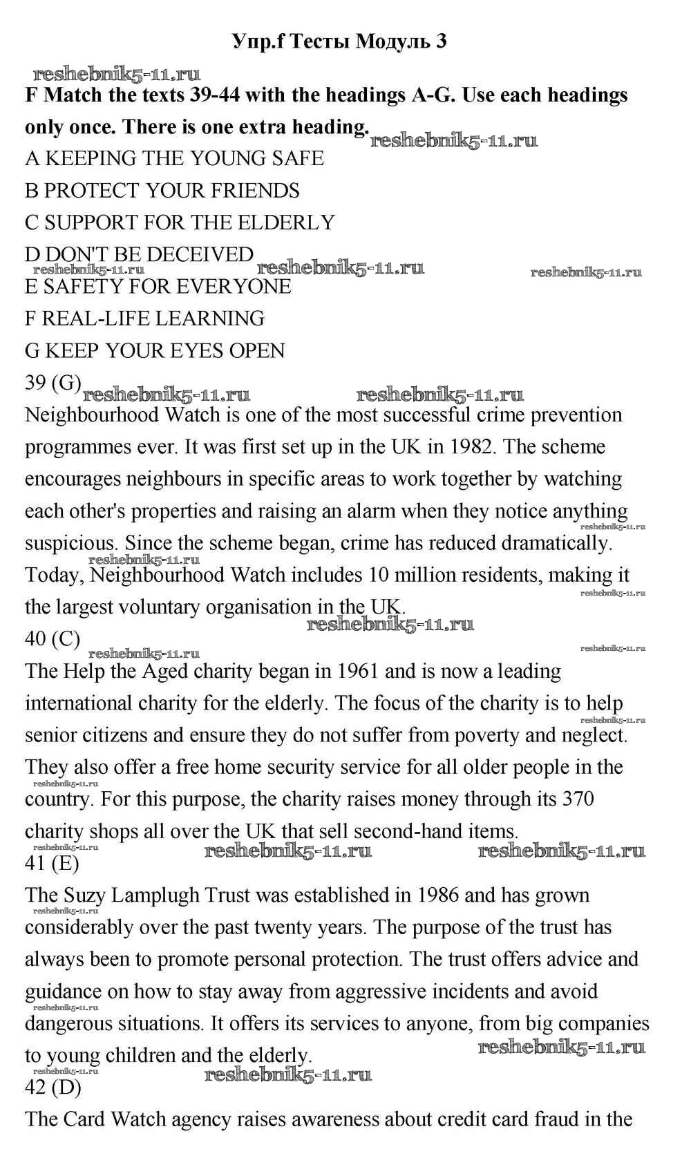 Готовая домашняя работа с ответами по Английскому языку за 11 класс Эванс, Дули, Оби, Афанасьева, Михеева Учебник Spotlight Просвещение 2015 ФГОС - Тесты F