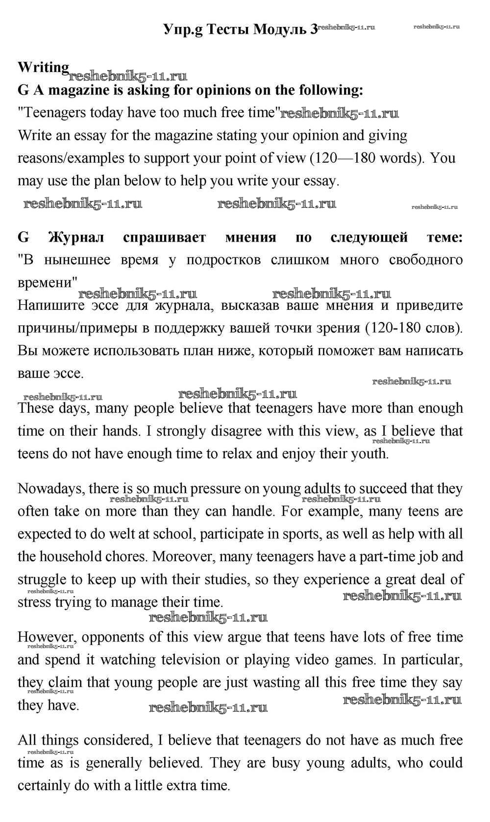 Готовая домашняя работа с ответами по Английскому языку за 11 класс Эванс, Дули, Оби, Афанасьева, Михеева Учебник Spotlight Просвещение 2015 ФГОС - Тесты G