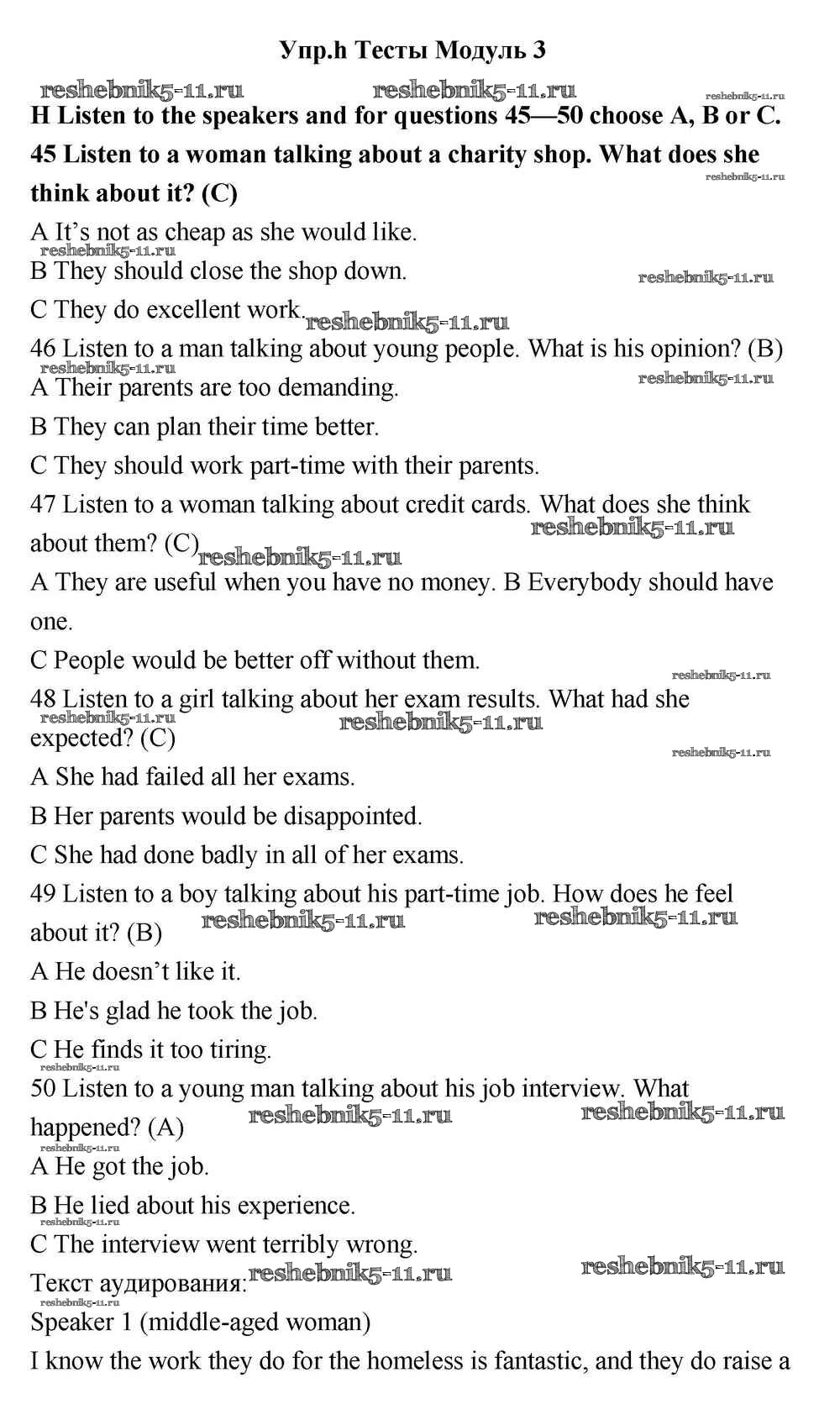 Готовая домашняя работа с ответами по Английскому языку за 11 класс Эванс, Дули, Оби, Афанасьева, Михеева Учебник Spotlight Просвещение 2015 ФГОС - Тесты H