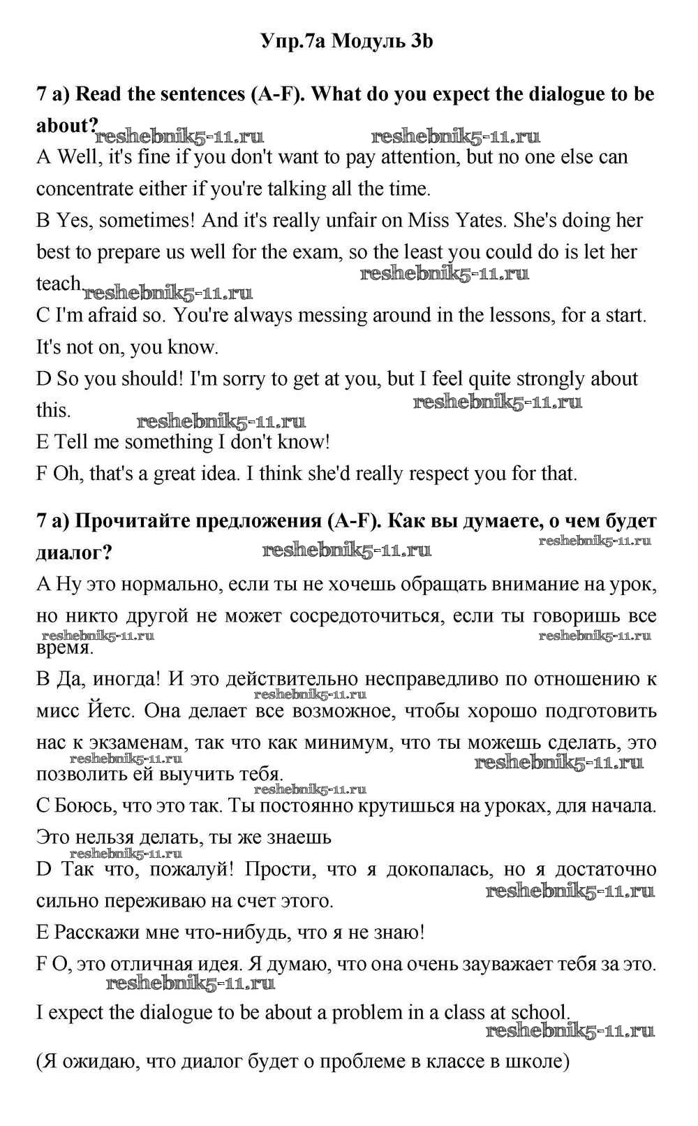 Готовая домашняя работа с ответами по Английскому языку за 11 класс Эванс, Дули, Оби, Афанасьева, Михеева Учебник Spotlight Просвещение 2015 ФГОС - Часть 3b 7a