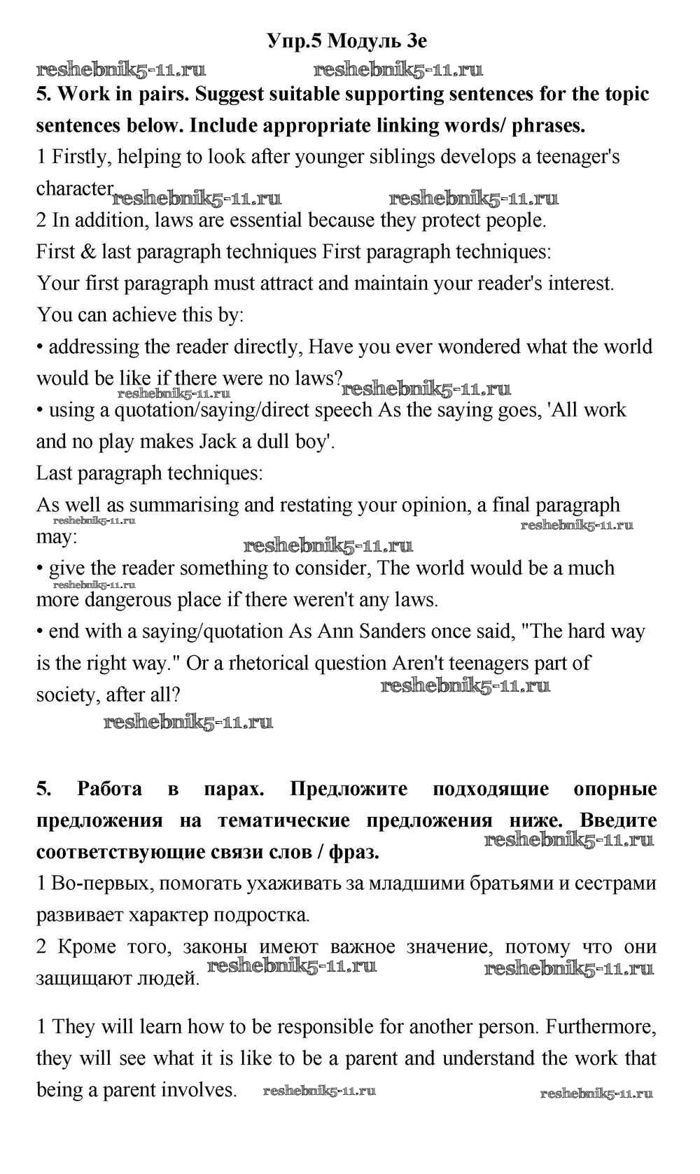 Готовая домашняя работа с ответами по Английскому языку за 11 класс Эванс, Дули, Оби, Афанасьева, Михеева Учебник Spotlight Просвещение 2015 ФГОС - Часть 3e 5