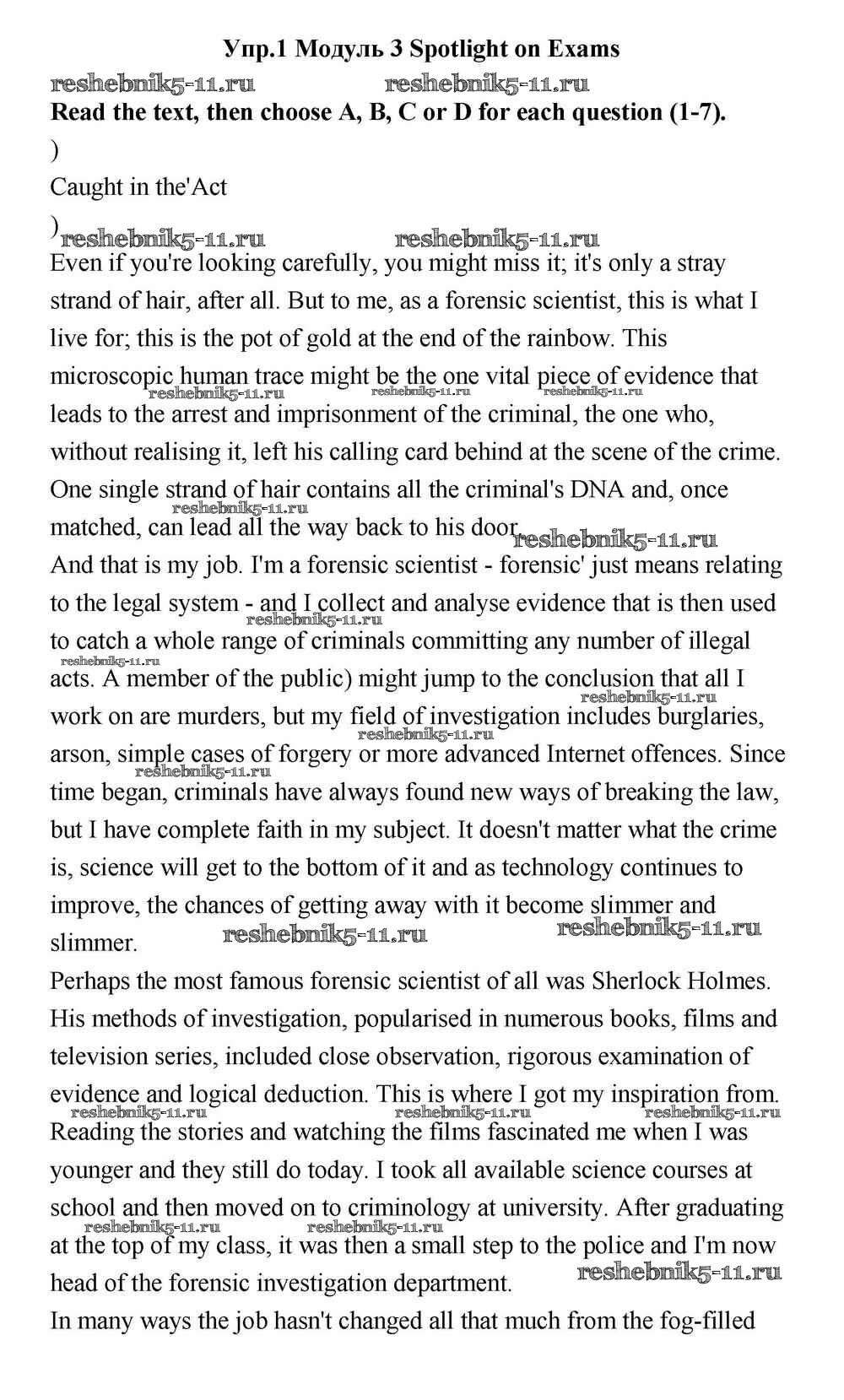 Готовая домашняя работа с ответами по Английскому языку за 11 класс Эванс, Дули, Оби, Афанасьева, Михеева Учебник Spotlight Просвещение 2015 ФГОС - Spotlight on Exams 1