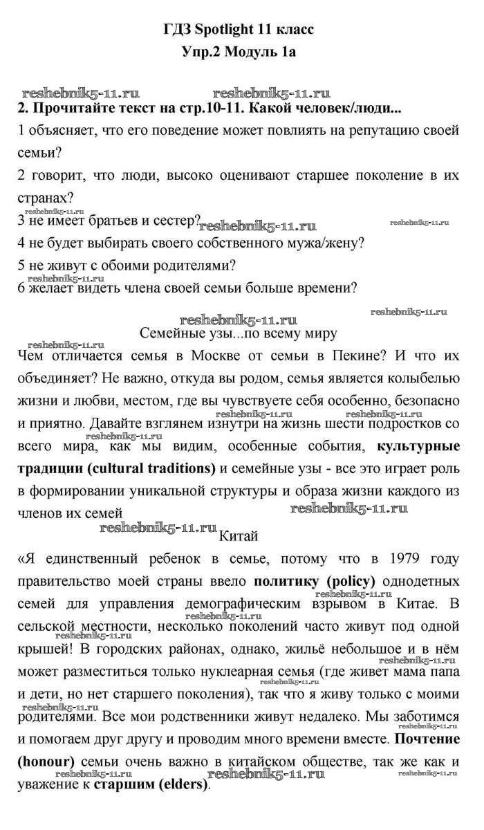 Готовая домашняя работа с ответами по Английскому языку за 11 класс Эванс, Дули, Оби, Афанасьева, Михеева Учебник Spotlight Просвещение 2015 ФГОС - 1a 2