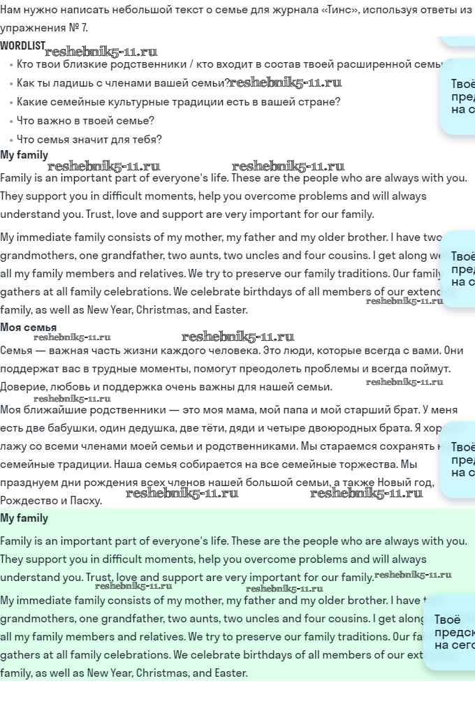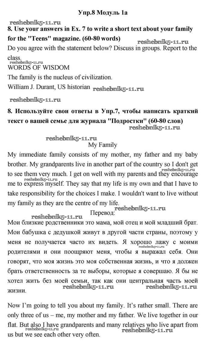 Готовая домашняя работа с ответами по Английскому языку за 11 класс Эванс, Дули, Оби, Афанасьева, Михеева Учебник Spotlight Просвещение 2015 ФГОС - 1a 8