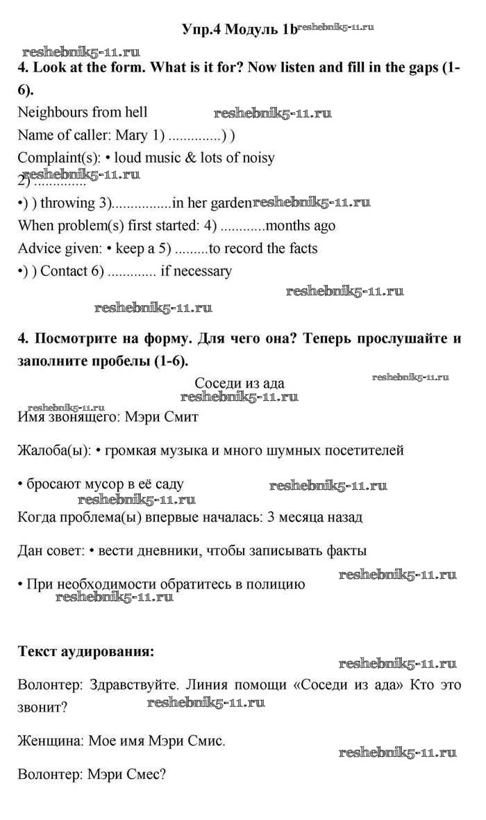 Готовая домашняя работа с ответами по Английскому языку за 11 класс Эванс, Дули, Оби, Афанасьева, Михеева Учебник Spotlight Просвещение 2015 ФГОС - 1b 4