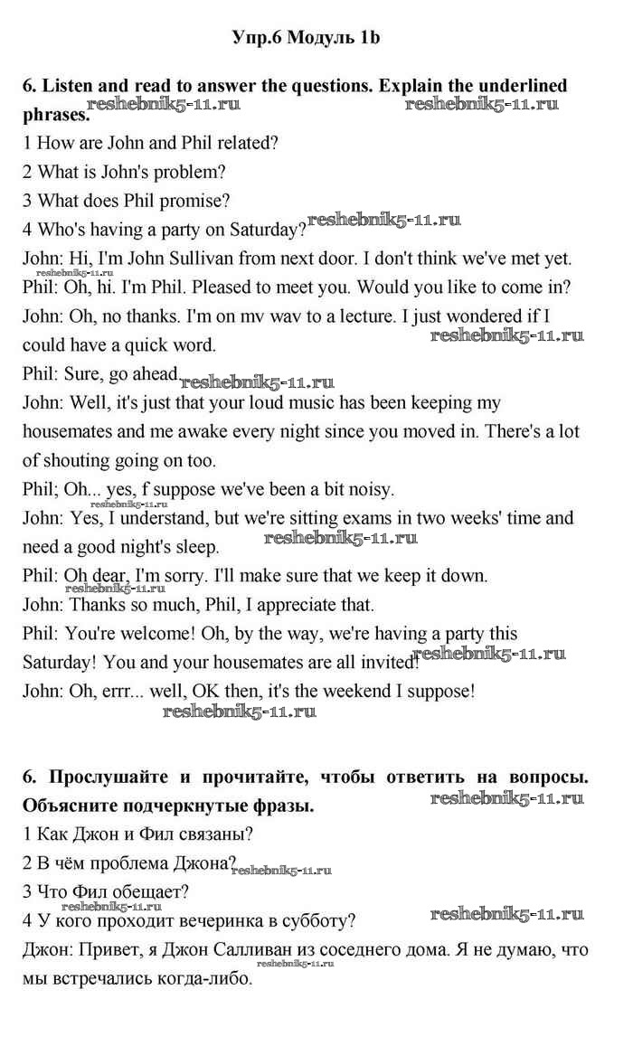 Готовая домашняя работа с ответами по Английскому языку за 11 класс Эванс, Дули, Оби, Афанасьева, Михеева Учебник Spotlight Просвещение 2015 ФГОС - 1b 6