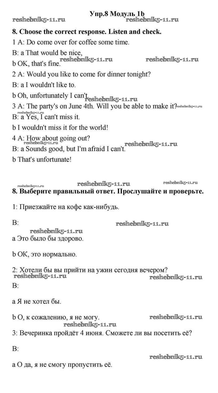 Готовая домашняя работа с ответами по Английскому языку за 11 класс Эванс, Дули, Оби, Афанасьева, Михеева Учебник Spotlight Просвещение 2015 ФГОС - 1b 8