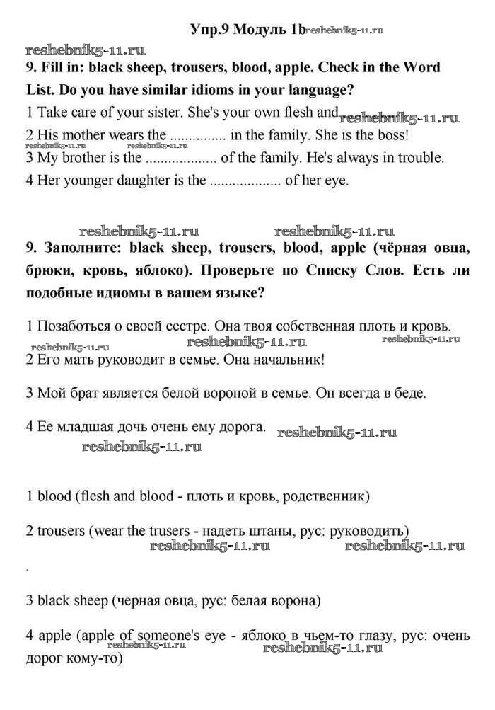 Готовая домашняя работа с ответами по Английскому языку за 11 класс Эванс, Дули, Оби, Афанасьева, Михеева Учебник Spotlight Просвещение 2015 ФГОС - 1b 9