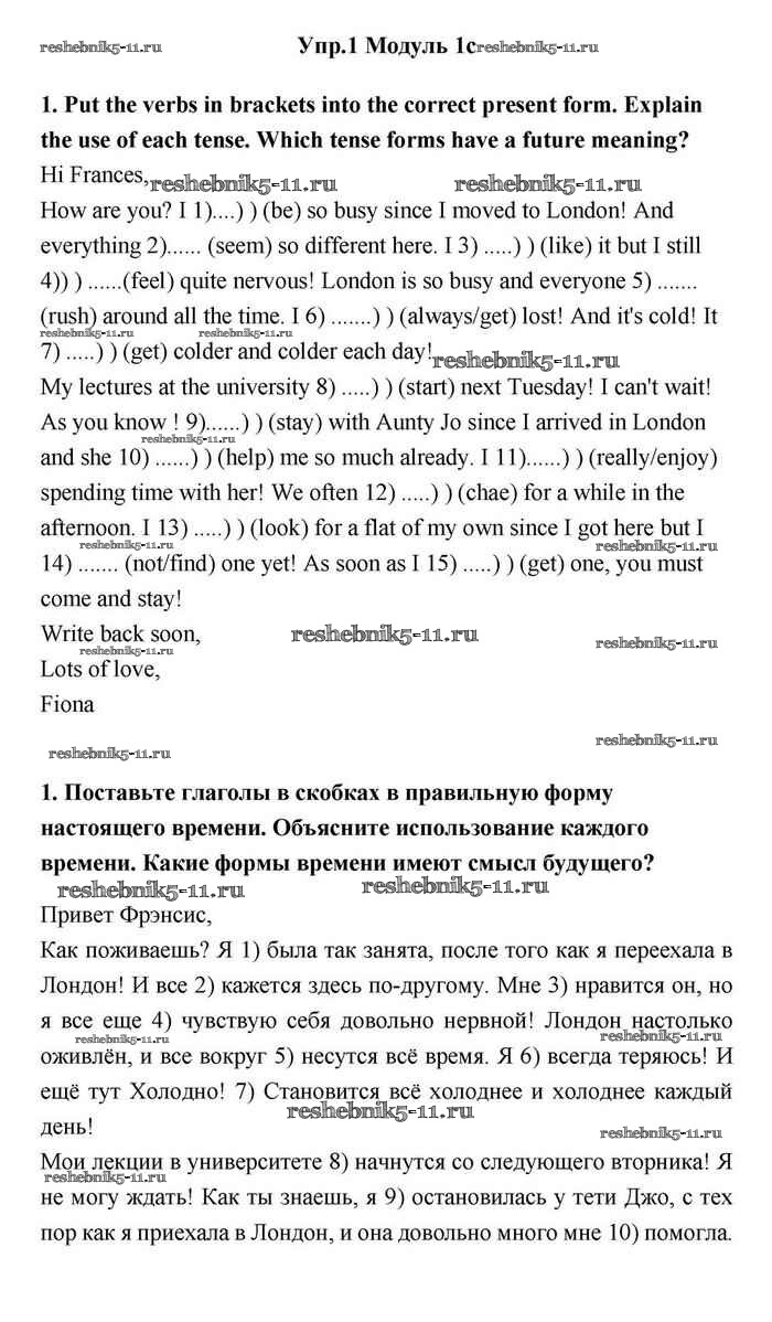 Готовая домашняя работа с ответами по Английскому языку за 11 класс Эванс, Дули, Оби, Афанасьева, Михеева Учебник Spotlight Просвещение 2015 ФГОС - 1c 1