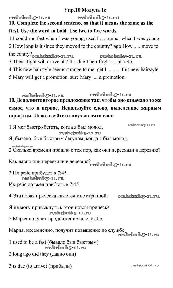 Готовая домашняя работа с ответами по Английскому языку за 11 класс Эванс, Дули, Оби, Афанасьева, Михеева Учебник Spotlight Просвещение 2015 ФГОС - 1c 10
