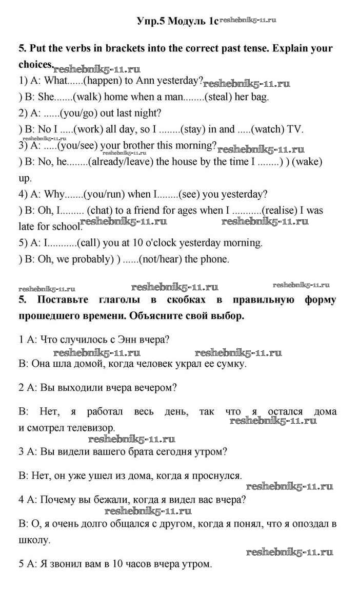 Готовая домашняя работа с ответами по Английскому языку за 11 класс Эванс, Дули, Оби, Афанасьева, Михеева Учебник Spotlight Просвещение 2015 ФГОС - 1c 5