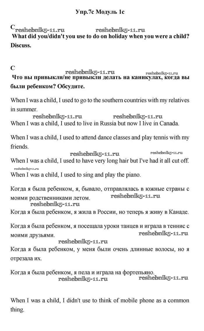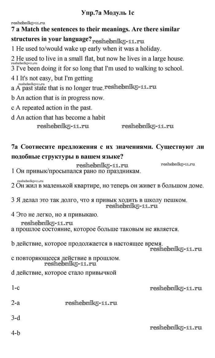 Готовая домашняя работа с ответами по Английскому языку за 11 класс Эванс, Дули, Оби, Афанасьева, Михеева Учебник Spotlight Просвещение 2015 ФГОС - 1c 7