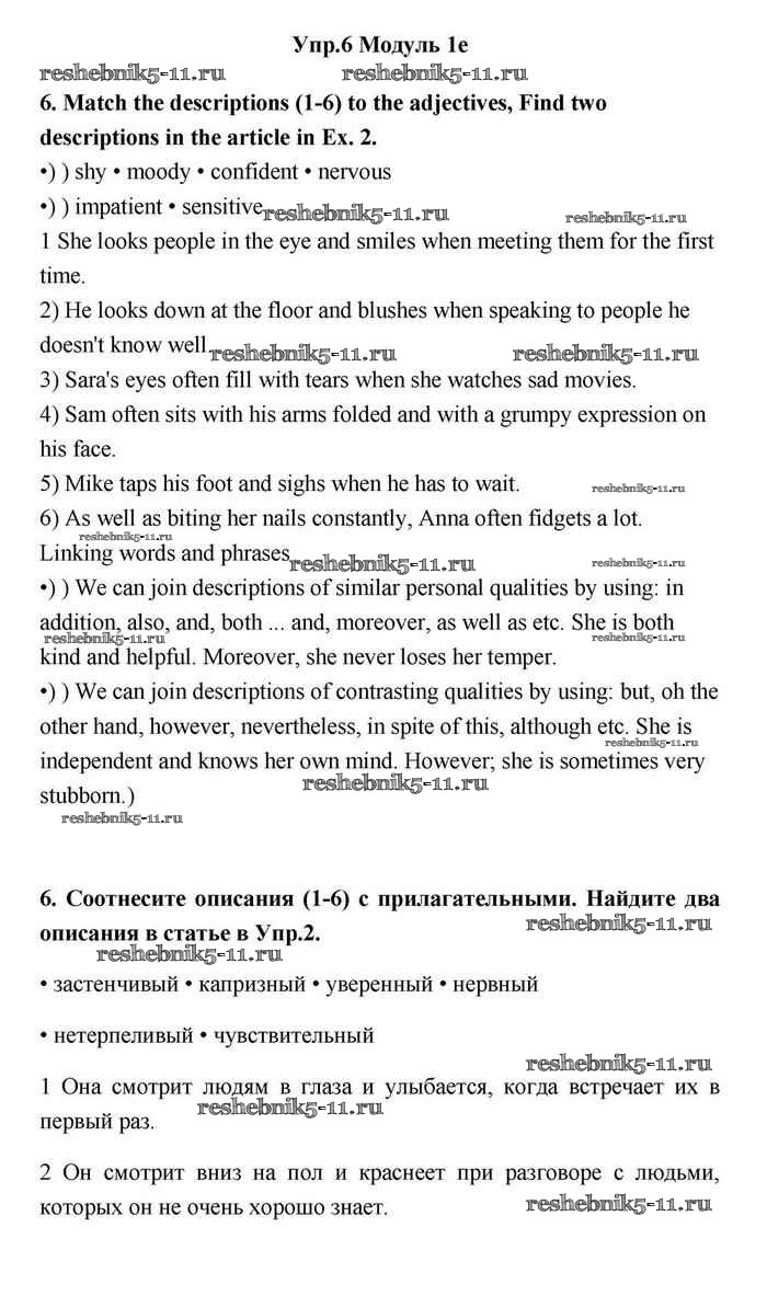 Готовая домашняя работа с ответами по Английскому языку за 11 класс Эванс, Дули, Оби, Афанасьева, Михеева Учебник Spotlight Просвещение 2015 ФГОС - 1e 6