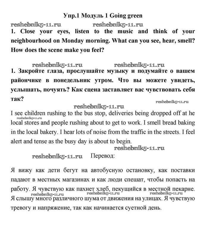 Готовая домашняя работа с ответами по Английскому языку за 11 класс Эванс, Дули, Оби, Афанасьева, Михеева Учебник Spotlight Просвещение 2015 ФГОС - Going green 1