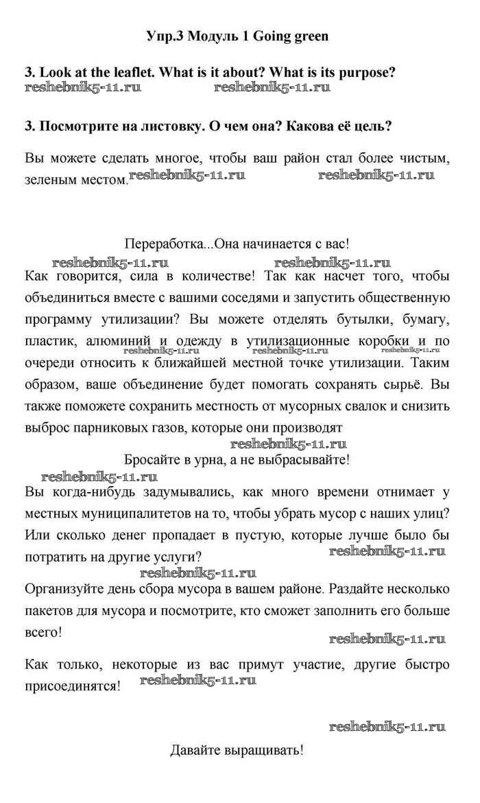 Готовая домашняя работа с ответами по Английскому языку за 11 класс Эванс, Дули, Оби, Афанасьева, Михеева Учебник Spotlight Просвещение 2015 ФГОС - Going green 3