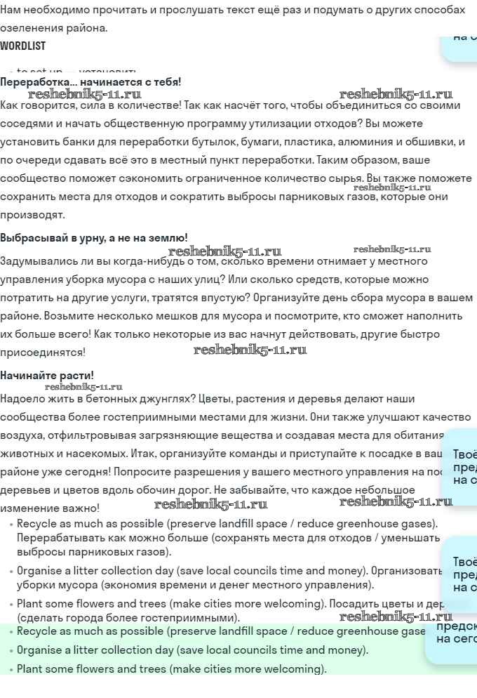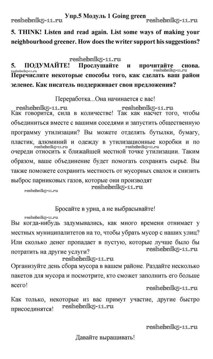 Готовая домашняя работа с ответами по Английскому языку за 11 класс Эванс, Дули, Оби, Афанасьева, Михеева Учебник Spotlight Просвещение 2015 ФГОС - Going green 5
