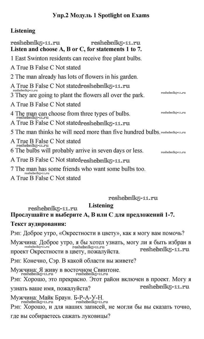 Готовая домашняя работа с ответами по Английскому языку за 11 класс Эванс, Дули, Оби, Афанасьева, Михеева Учебник Spotlight Просвещение 2015 ФГОС - Spotlight on exams Listening