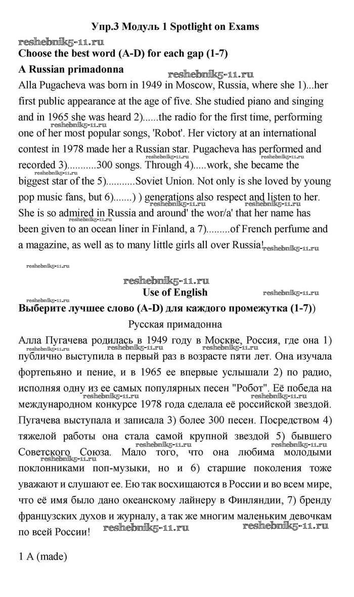 Решебник №1 / module 1 / spotlight on exams / use of english