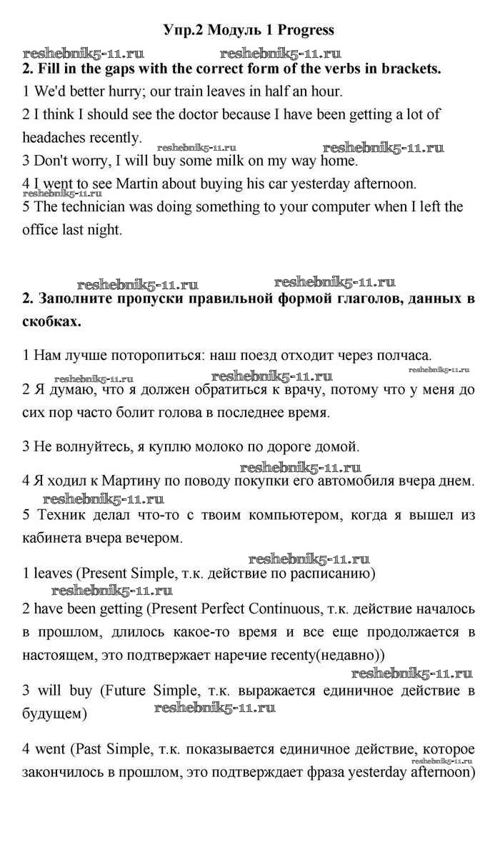 Готовая домашняя работа с ответами по Английскому языку за 11 класс Эванс, Дули, Оби, Афанасьева, Михеева Учебник Spotlight Просвещение 2015 ФГОС - Progress check 1 2