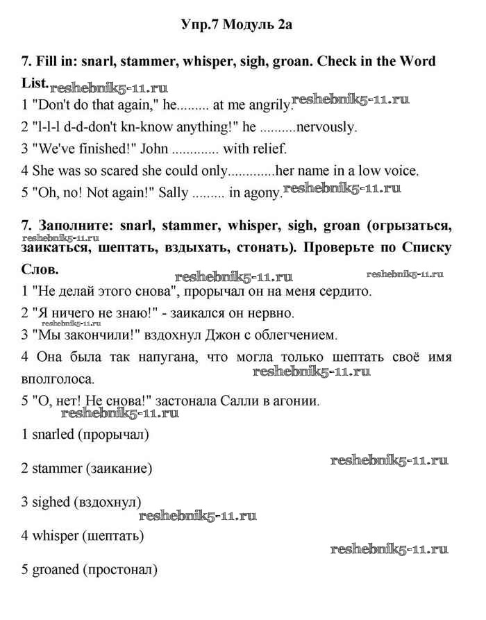 Готовая домашняя работа с ответами по Английскому языку за 11 класс Эванс, Дули, Оби, Афанасьева, Михеева Учебник Spotlight Просвещение 2015 ФГОС - 2a 7