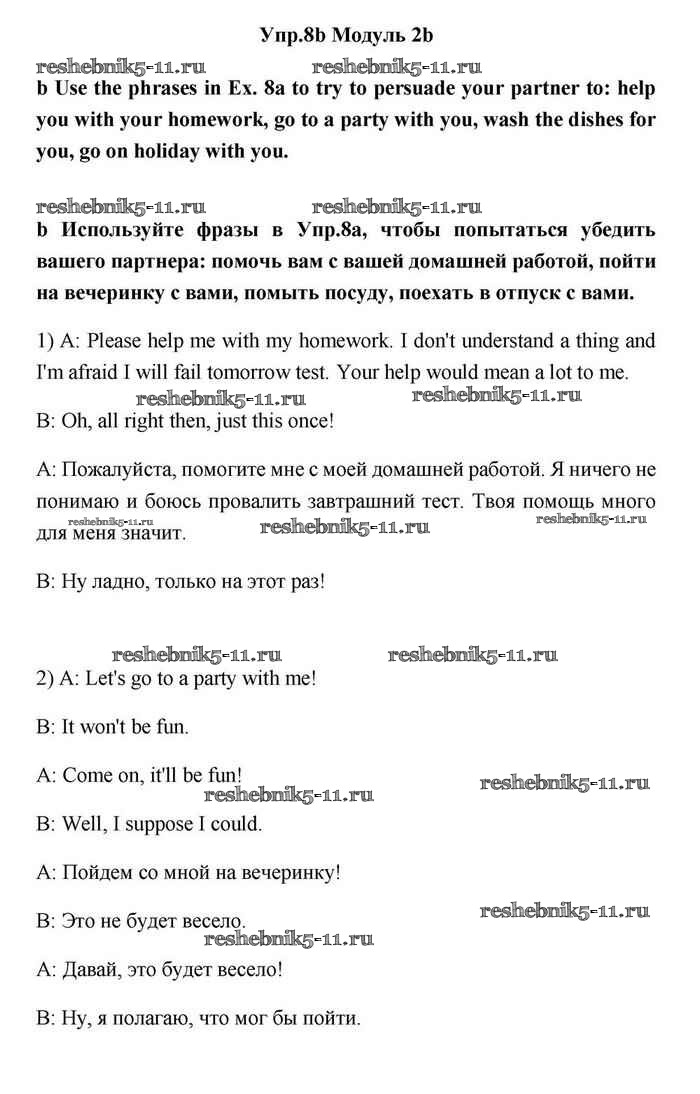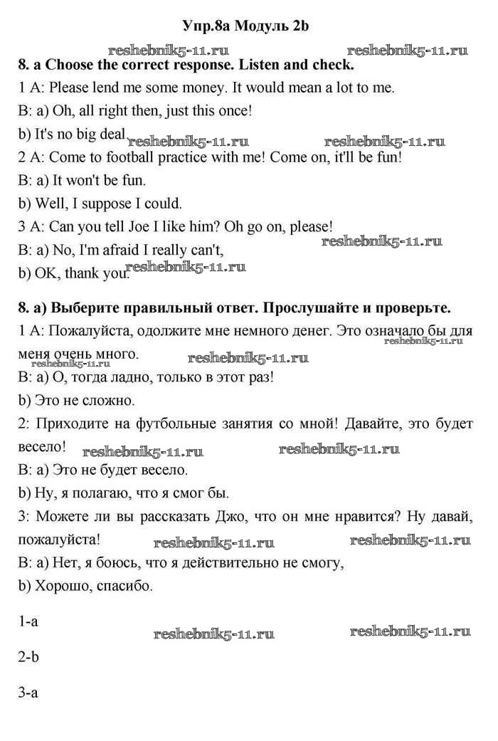 Готовая домашняя работа с ответами по Английскому языку за 11 класс Эванс, Дули, Оби, Афанасьева, Михеева Учебник Spotlight Просвещение 2015 ФГОС - 2b 8