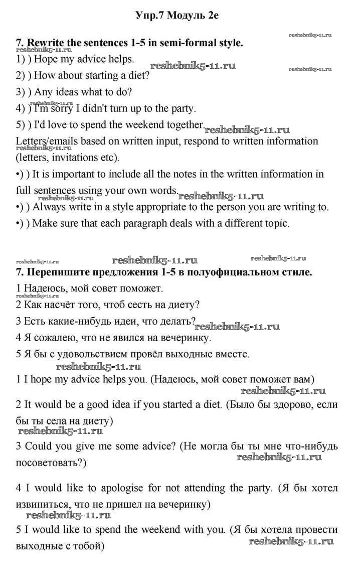 Готовая домашняя работа с ответами по Английскому языку за 11 класс Эванс, Дули, Оби, Афанасьева, Михеева Учебник Spotlight Просвещение 2015 ФГОС - 2e 7