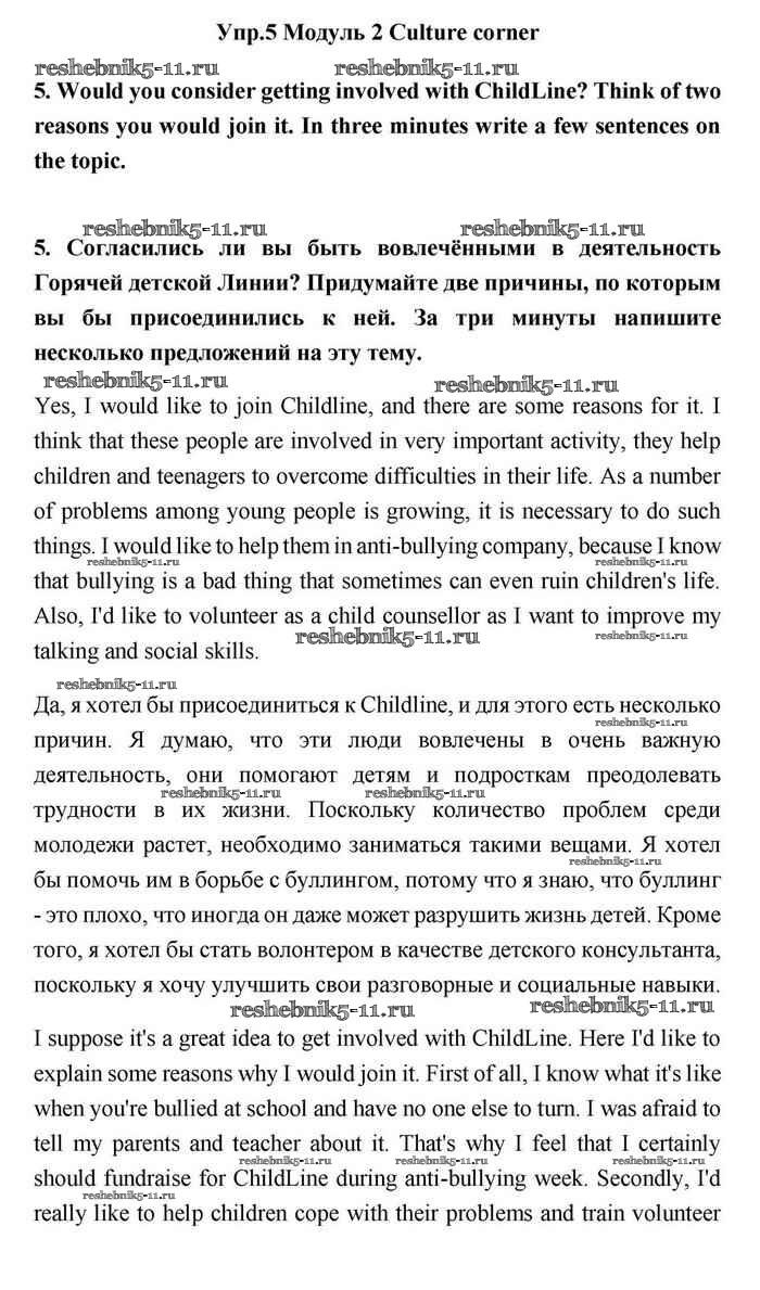 Готовая домашняя работа с ответами по Английскому языку за 11 класс Эванс, Дули, Оби, Афанасьева, Михеева Учебник Spotlight Просвещение 2015 ФГОС - Culture corner 2 5