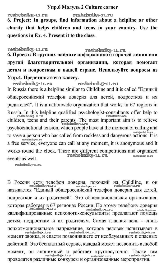 Готовая домашняя работа с ответами по Английскому языку за 11 класс Эванс, Дули, Оби, Афанасьева, Михеева Учебник Spotlight Просвещение 2015 ФГОС - Culture corner 2 6