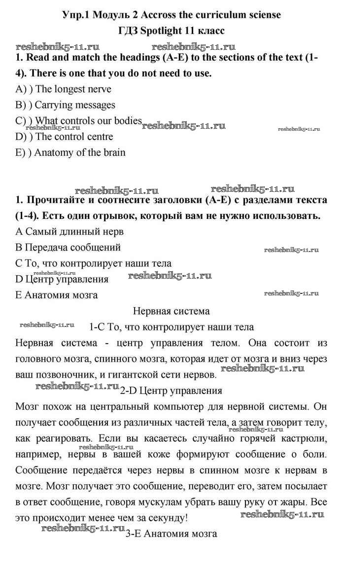 Готовая домашняя работа с ответами по Английскому языку за 11 класс Эванс, Дули, Оби, Афанасьева, Михеева Учебник Spotlight Просвещение 2015 ФГОС - Across the curriculum 1