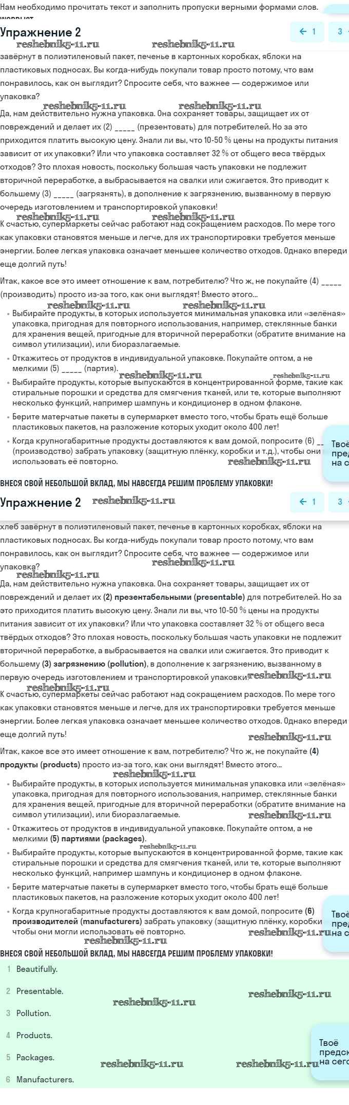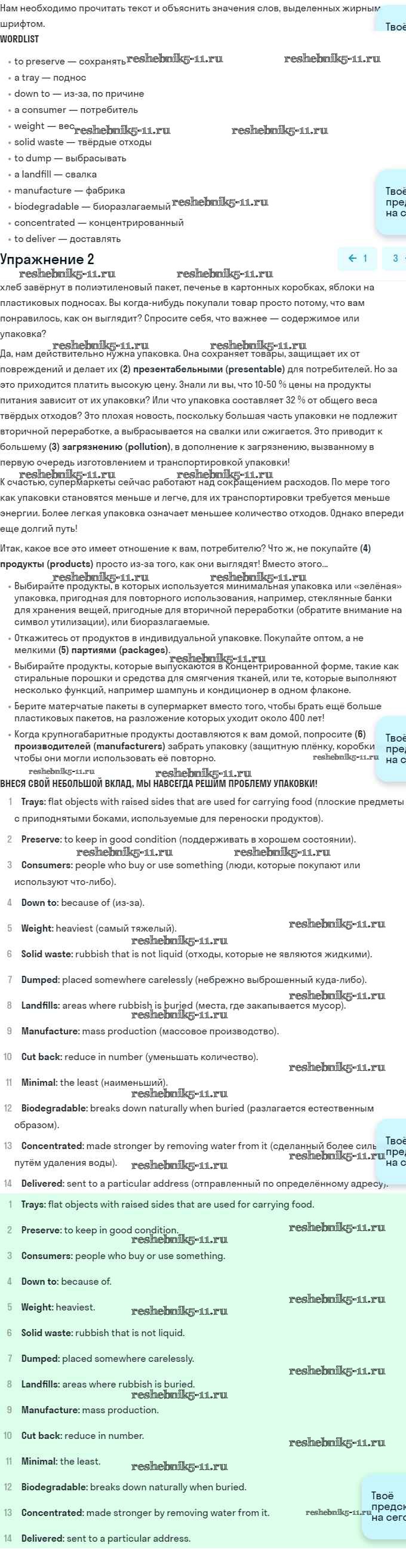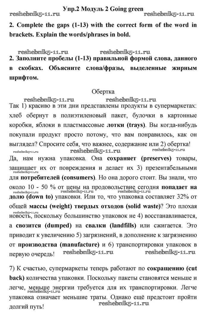 Готовая домашняя работа с ответами по Английскому языку за 11 класс Эванс, Дули, Оби, Афанасьева, Михеева Учебник Spotlight Просвещение 2015 ФГОС - Going green 2