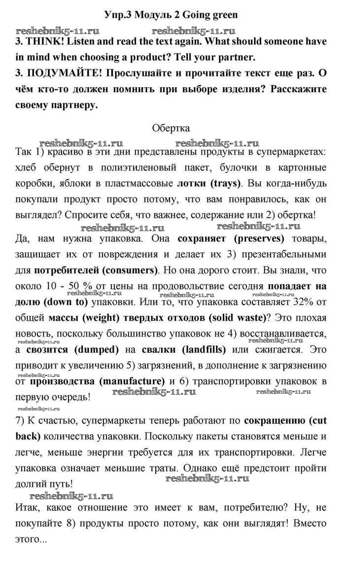 Готовая домашняя работа с ответами по Английскому языку за 11 класс Эванс, Дули, Оби, Афанасьева, Михеева Учебник Spotlight Просвещение 2015 ФГОС - Going green 3