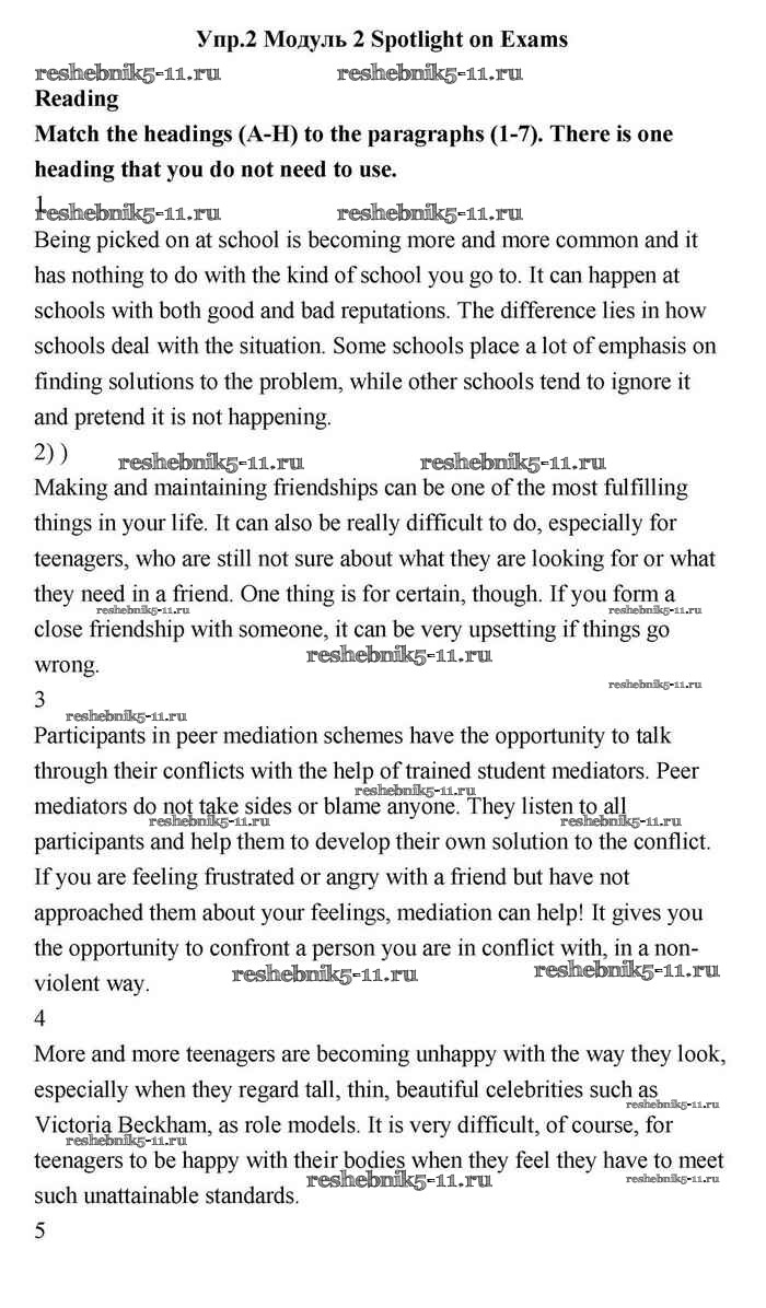 Решебник №2 / module 2 / spotlight on exams / reading