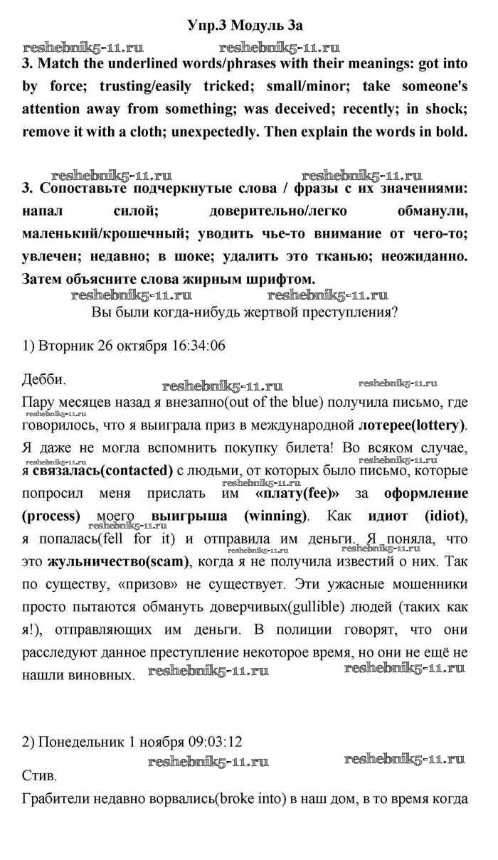 Готовая домашняя работа с ответами по Английскому языку за 11 класс Эванс, Дули, Оби, Афанасьева, Михеева Учебник Spotlight Просвещение 2015 ФГОС - 3a 3