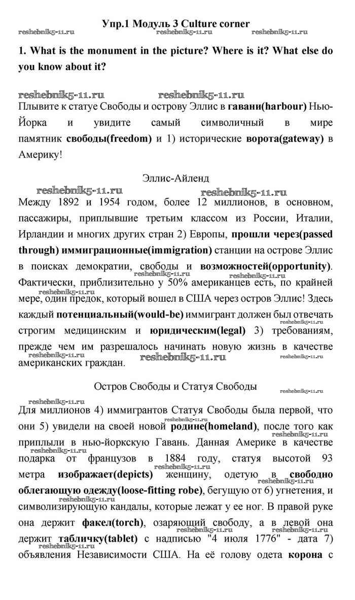 Готовая домашняя работа с ответами по Английскому языку за 11 класс Эванс, Дули, Оби, Афанасьева, Михеева Учебник Spotlight Просвещение 2015 ФГОС - Culture corner 3 1