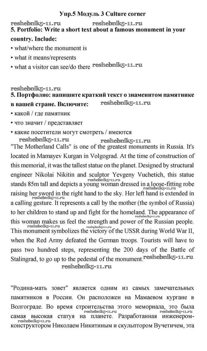 Готовая домашняя работа с ответами по Английскому языку за 11 класс Эванс, Дули, Оби, Афанасьева, Михеева Учебник Spotlight Просвещение 2015 ФГОС - Culture corner 3 5