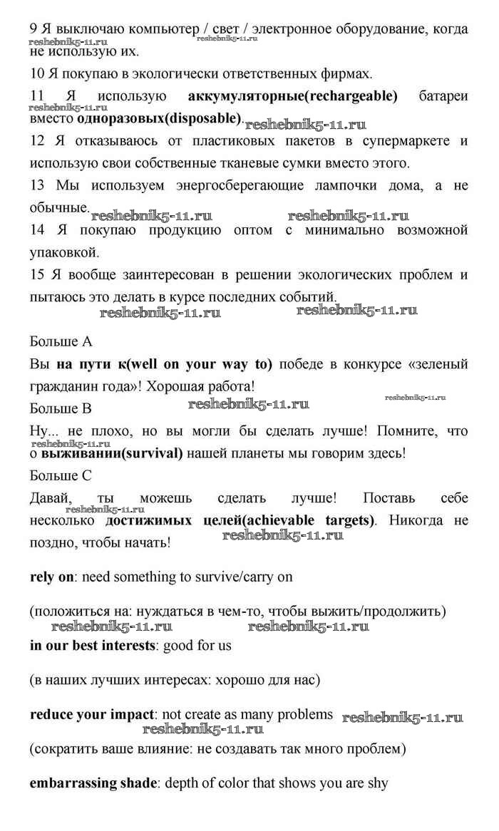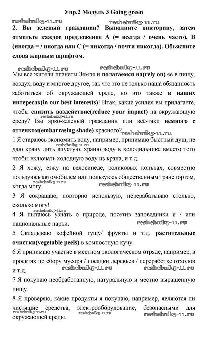 Готовая домашняя работа с ответами по Английскому языку за 11 класс Эванс, Дули, Оби, Афанасьева, Михеева Учебник Spotlight Просвещение 2015 ФГОС - Going green 2