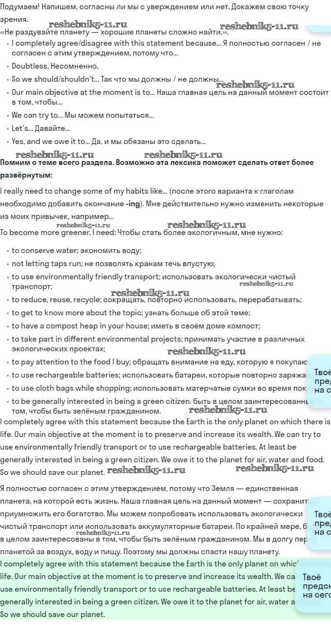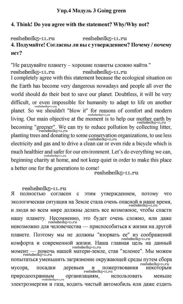 Готовая домашняя работа с ответами по Английскому языку за 11 класс Эванс, Дули, Оби, Афанасьева, Михеева Учебник Spotlight Просвещение 2015 ФГОС - Going green 4