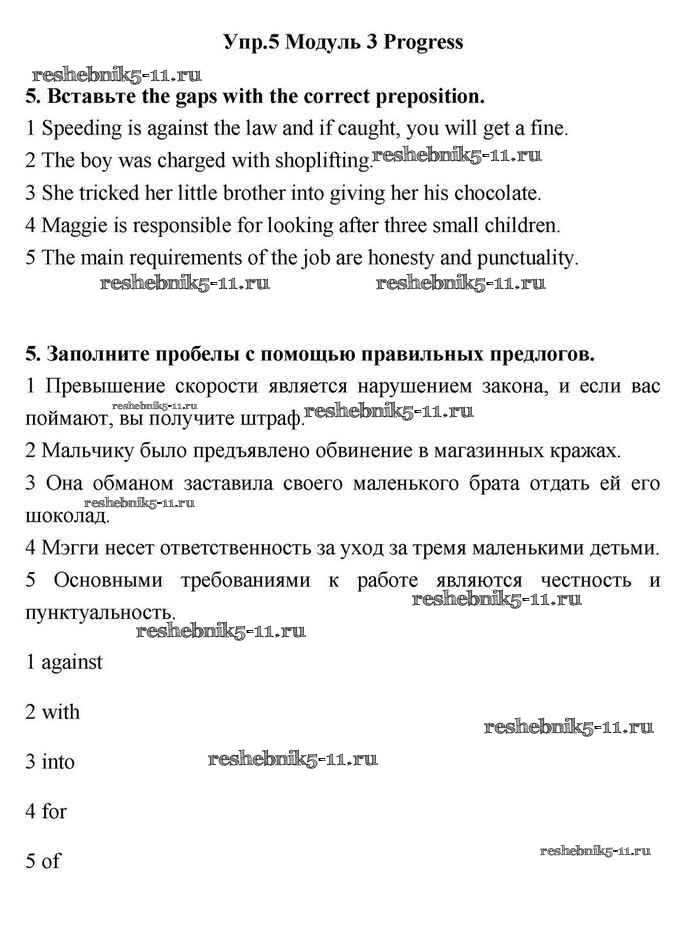 Готовая домашняя работа с ответами по Английскому языку за 11 класс Эванс, Дули, Оби, Афанасьева, Михеева Учебник Spotlight Просвещение 2015 ФГОС - Progress check 3 5