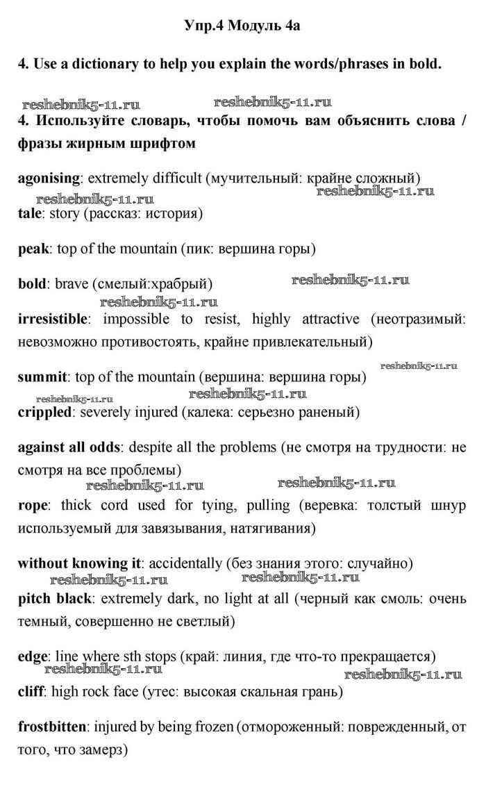 Готовая домашняя работа с ответами по Английскому языку за 11 класс Эванс, Дули, Оби, Афанасьева, Михеева Учебник Spotlight Просвещение 2015 ФГОС - 4a 4