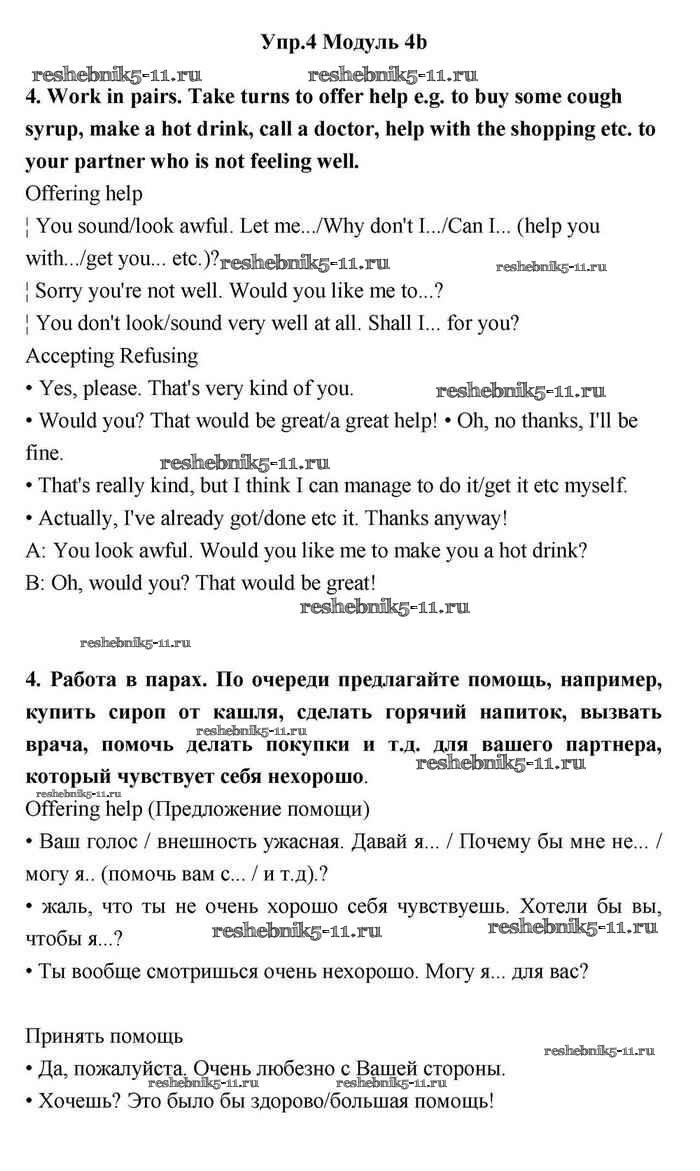 Готовая домашняя работа с ответами по Английскому языку за 11 класс Эванс, Дули, Оби, Афанасьева, Михеева Учебник Spotlight Просвещение 2015 ФГОС - 4b 4